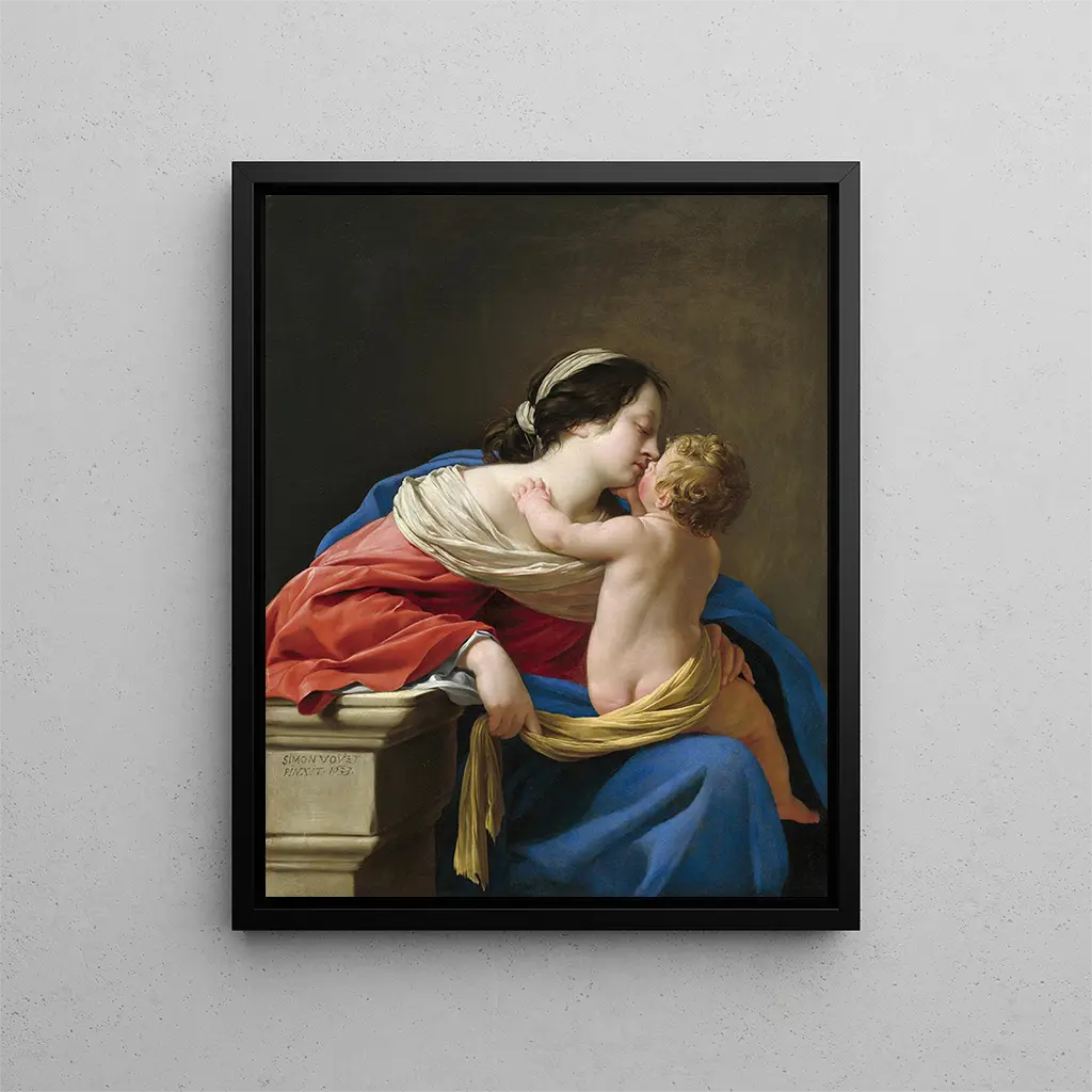 Scultura raffinatissima raffigurante la Madonna con Bambino, opera del celebre artista francese Simon Vouet. Questa splendida rappresentazione cattura l'intima tenerezza materna e la sacralità del momento, rendendola un'aggiunta preziosa a qualsiasi collezione d'arte sacra o decorazione raffinata.