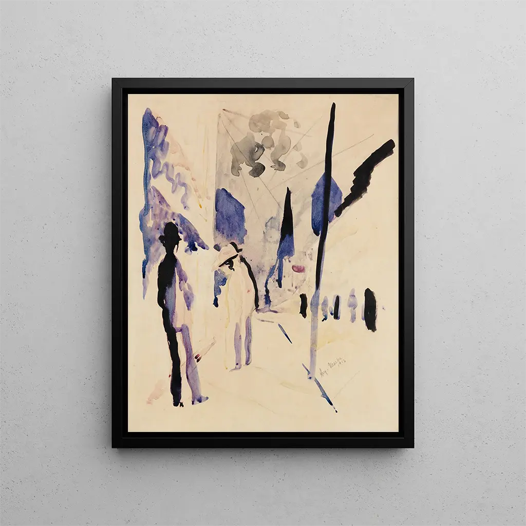 August Macke, figura emblematica dell'inizio del XX secolo, ha saputo lasciare il segno nel suo tempo con il suo approccio innovativo e la sua sensibilità artistica. Membro del gruppo espressionista "Die Brücke", ha esplorato i temi della modernità, della natura e dell'umanità attraverso una palette di colori vivaci e forme audaci. La sua influenza si estende ben oltre il suo lavoro, ispirando numerosi artisti contemporanei e futuri. Macke ha saputo catturare lo spirito del suo tempo, traducendo emozioni e sensazioni in un'opera d'arte accessibile e toccante. "Rue am Abend" è un esempio perfetto di questa capacità di evocare sentimenti profondi attraverso immagini semplici, rendendo quest'artista una figura imprescindibile nella storia dell'arte moderna.