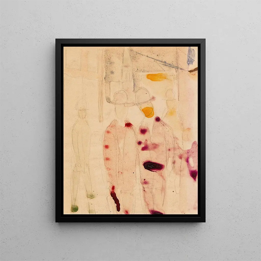 "Rue avec des gens petits" è un esempio emblematico dello stile unico di August Macke, che si caratterizza per il suo uso audace del colore e della luce. I personaggi, sebbene rappresentati su una scala ridotta, sono permeati di una vitalità palpabile, come se danzassero in un ballet silenzioso nel cuore della città. Le tonalità vivaci di blu, giallo e rosso si intrecciano in modo armonioso, creando un'atmosfera allo stesso tempo dinamica e rilassante. Le linee fluide e le forme semplificate testimoniano l'influenza dei movimenti artistici contemporanei, rivelando al contempo la sensibilità personale dell'artista. L'opera invita lo spettatore a immergersi in un mondo in cui la quotidianità diventa poetica, dove ogni figura è una storia a sé.