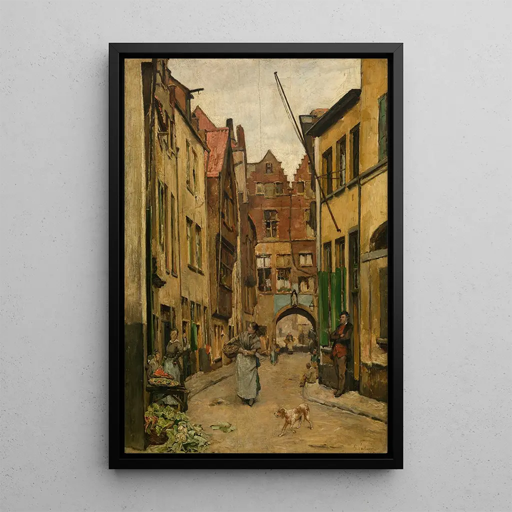Rue Palingbrug : una finestra sulla vita urbana "Rue Palingbrug" di Piet Verhaert è un'opera che cattura l'essenza vibrante della vita urbana attraverso una scena di strada animata. I colori caldi e i dettagli minuziosi degli edifici e dei passanti creano un'atmosfera vivace e accogliente. Verhaert utilizza una tecnica di pittura che mescola realismo e impressionismo, permettendo agli spettatori di percepire il movimento e l'energia della città. Ogni elemento della tela, dalle ombre proiettate ai riflessi sui ciottoli, contribuisce a una narrazione visiva ricca che invita all'esplorazione e alla scoperta. Piet Verhaert : un testimone del suo tempo Piet Verhaert, artista belga attivo all'inizio del XX secolo, ha saputo catturare lo spirito della sua epoca attraverso le sue opere. Influenzato dal movimento impressionista, ha sviluppato uno stile unico che mette in risalto la luce e il colore. "Rue Palingbrug" testimonia la sua abilità nel rappresentare scene della vita quotidiana, integrando allo stesso tempo elementi di modernità. Verhaert ha spesso esplorato i temi dell'urbanità e dell'interazione umana, rendendo questa stampa d'arte un riflesso prezioso della società del suo tempo, rimanendo al contempo senza tempo nel suo fascino. Una acquisizione decorativa con molteplici vantaggi La riproduzione di "Rue Palingbrug" è un pezzo decorativo ideale per arricchire il vostro interno, sia in un soggiorno, uno studio o una sala d'attesa. La qualità di stampa permette di rendere omaggio alla finezza dei dettagli e alla palette di colori vibranti di Verhaert. Questa tela porta un tocco di autenticità e calore al vostro spazio, stimolando anche l'interesse dei visitatori. Scegliendo questa opera, optate per un quadro che non solo abbellisce il vostro arredamento, ma evoca anche una riflessione sulla vita urbana e sulle interazioni umane.