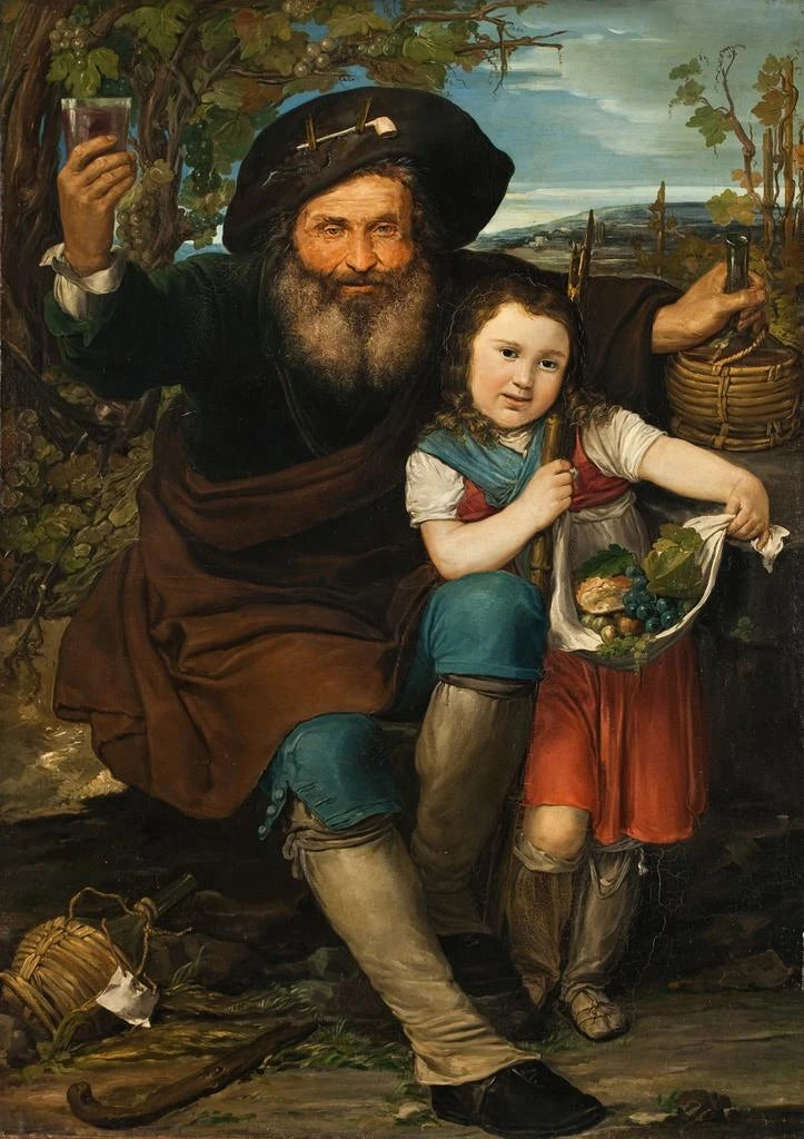 Vigneron italiano e sua figlia di Francesco Baratta è un'opera toccante che illustra la complicità tra un padre e sua figlia in un contesto rurale. I colori caldi e terrosi evocano la ricchezza della terra e la dolcezza delle relazioni familiari. Baratta utilizza una tecnica di pittura realistica, mettendo in risalto le espressioni dei personaggi e i dettagli del paesaggio circostante. Questa scena intima, in cui il vignaiolo condivide un momento di lavoro con sua figlia, trasmette un'atmosfera di serenità e di felicità semplice, invitando lo spettatore ad apprezzare le piccole gioie della vita.