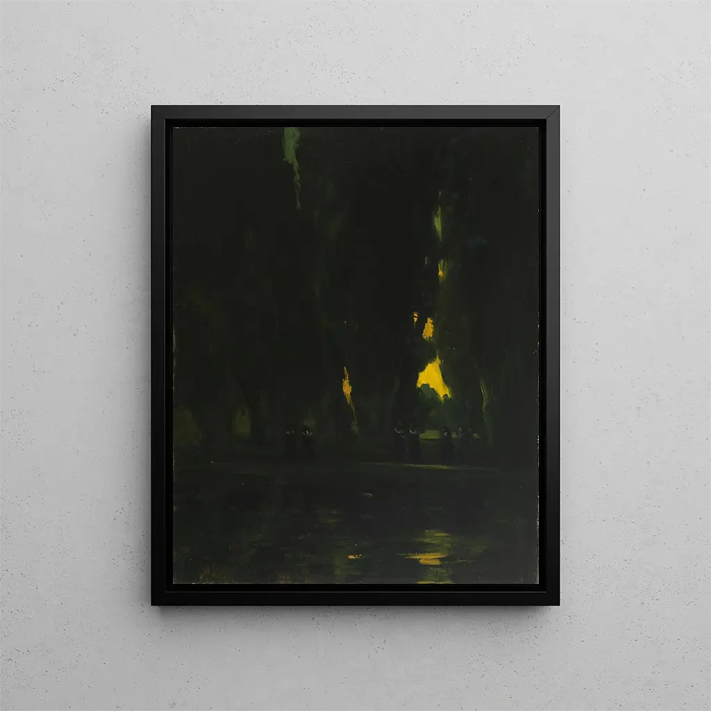 Villa Falconieri - Charles Walter Stetson – Introduzione affascinante Immersa nel cuore della tradizione artistica dei primi del Novecento, l'opera "Villa Falconieri" di Charles Walter Stetson si erge come una testimonianza vibrante dell'armonia tra architettura e natura. Questa rappresentazione, allo stesso tempo delicata e maestosa, invita lo spettatore a immergersi in un universo dove il tempo sembra essersi fermato. La villa, simbolo del paesaggio romano, si impone come un emblema dell'eleganza italiana, mentre il talento di Stetson esalta ogni dettaglio di questa dimora storica. La luce che accarezza le pareti e i giardini rigogliosi evoca un'atmosfera di serenità, trasportando l'osservatore in un'epoca in cui arte e vita quotidiana si intrecciavano con grazia. Stile e unicità dell’opera Lo stile di Stetson in "Villa Falconieri" si distingue per il suo approccio impressionista, caratterizzato da pennellate vibranti e da una palette di colori accuratamente selezionata. Ogni sfumatura, ogni ombra, contribuisce a creare un'atmosfera poetica, dove realtà e sogno si mescolano. La composizione dell'opera, equilibrata e armoniosa, rivela un'attenzione meticolosa ai dettagli architettonici, celebrando al contempo la bellezza naturale circostante. Gli alberi maestosi, i fiori sboccianti e il cielo azzurro si combinano per formare un quadro vivente, dove la villa diventa il punto focale di una scena idilliaca. Questa fusione tra architettura e natura è una firma di Stetson, che riesce a catturare l'essenza stessa dell'armonia. L’artista e la sua influenza Charles Walter Stetson, artista americano di origine, ha saputo assorbire le influenze europee, soprattutto durante i suoi soggiorni in Italia. La sua formazione artistica e il suo amore per la luce e i paesaggi hanno plasmato il suo stile unico. Stetson è stato un pioniere nell'esplorazione della luce e dell'atmosfera, cercando di trasmettere emozioni attraverso le sue opere. Il suo lavoro su "Villa Falconieri" illustra perfettamente questa ricerca, dove ogni pennellata sembra respirare vita. Integrando elementi di impressionismo e post-impressionismo, Stetson ha saputo creare un linguaggio visivo tutto suo, influenzando così numerosi artisti