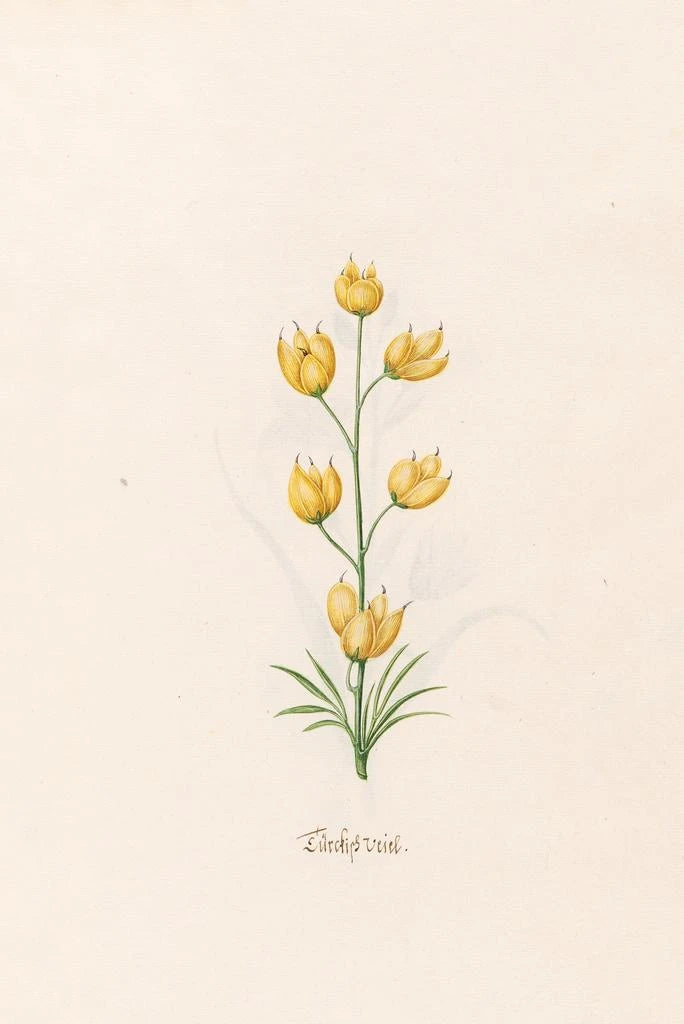 Magdalena Rosina Funck, attiva nel XIX secolo, è un'artista spesso associata al movimento botanico della sua epoca. Influenzata dai correnti naturalisti, ha saputo catturare la bellezza dei fiori con una precisione notevole. Le sue opere, sebbene meno conosciute di quelle dei suoi contemporanei, testimoniano una cura per i dettagli e una passione per la natura. Funck ha contribuito all'illustrazione botanica, un campo che ha guadagnato popolarità durante questo periodo, permettendo così una migliore comprensione delle specie floreali. Il suo lavoro è un riflesso dell'interesse crescente per la scienza e l'arte, fondendo estetica e osservazione.