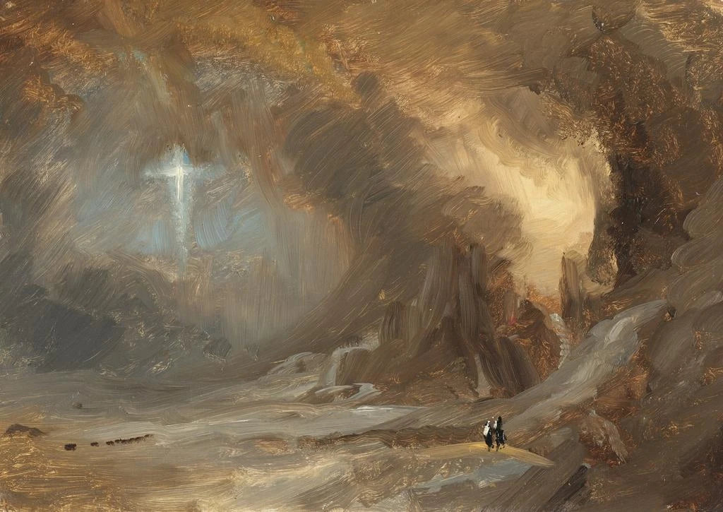 Frederic Edwin Church, figura emblematica del movimento Hudson River School, ha saputo unire il paesaggio a una dimensione spirituale. Attivo nel XIX secolo, è stato influenzato dai viaggi in Sud America e dalla filosofia romantica, cercando di catturare la bellezza sublime della natura. Le sue opere, spesso grandiose, riflettono una ricerca di trascendenza e un'ammirazione per la creazione divina. "Vision de la Croix" si inserisce in questa linea, testimonianza dell'importanza della natura nella spiritualità e nell'arte del suo tempo.