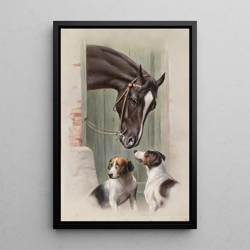 La riproduzione di Visita alla scuderia di Carl Reichert cattura un istante di dolcezza e di complicità tra l'uomo e l'animale. In questa scena intima, un giovane ragazzo si avvicina a un cavallo, illustrando la relazione di fiducia e affetto che può esistere tra i due. I colori caldi e i giochi di luce creano un'atmosfera serena, mentre la tecnica realistica di Reichert mette in risalto i dettagli degli animali e del loro ambiente. Questa tela evoca la bellezza semplice dei momenti condivisi, invitando a una contemplazione rasserenante.