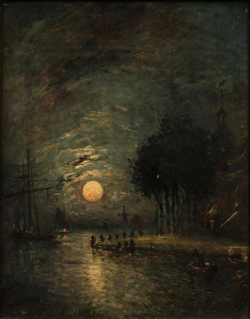 Vista al chiaro di luna di Dordrecht - Johan Barthold Jongkind